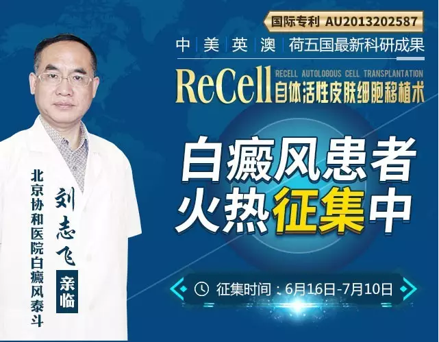 本次征集活动为切实解决患者难治愈、易复发的病痛,独家征集疑难型、久治不愈、久治无效、反复发作白癜风患者。为他们采用现今国际先进的大面积专利技术——ReCell自体活性皮肤细胞移植术。该技术是通过科技手段取2*2平方厘米的自体皮肤, 可一次性治愈320平方厘米的皮肤,复发几率创下历史新低,实现了大面积白癜风治疗革命性突破。
